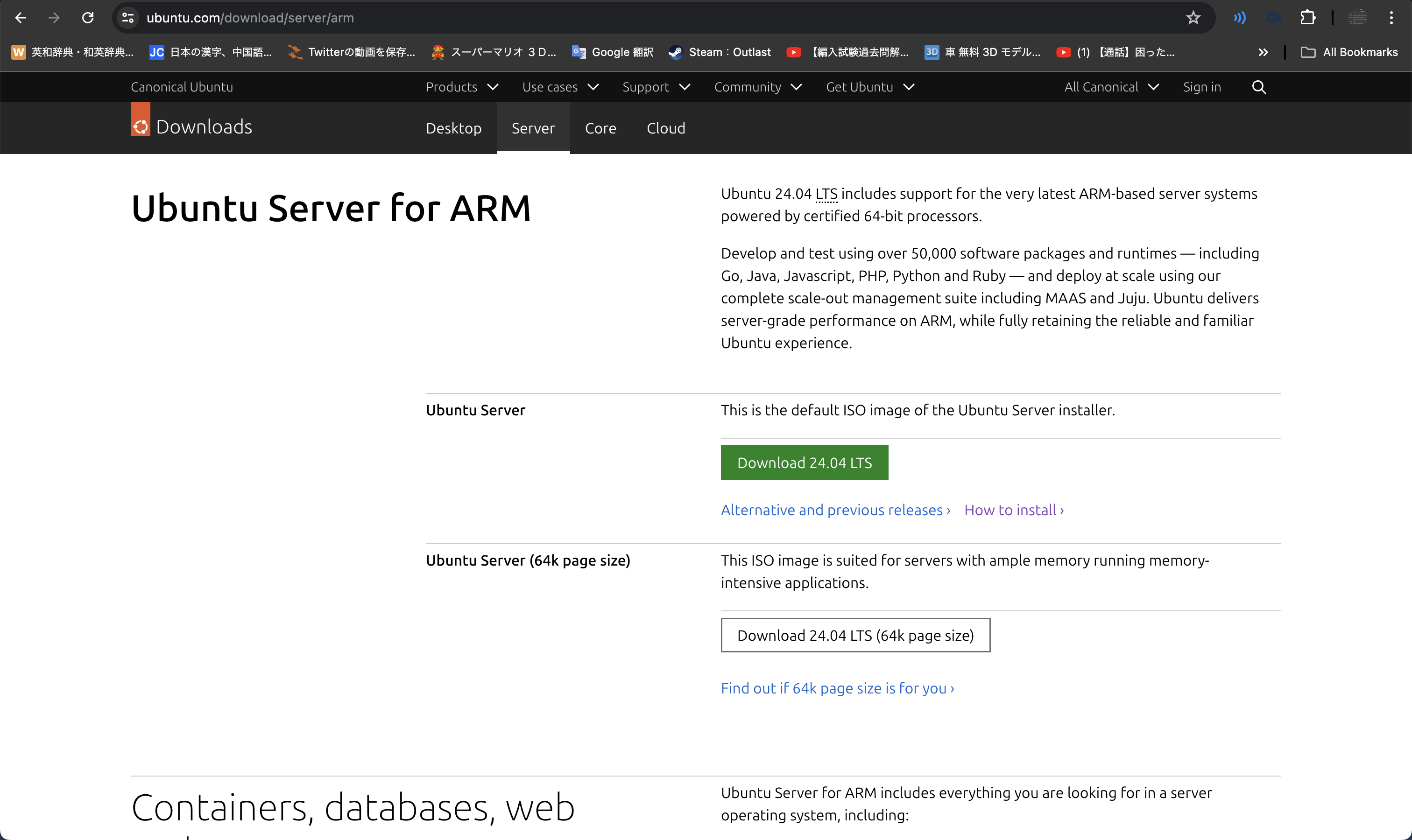 Ubuntu Server for ARM(https://ubuntu.com/download/server/arm)にアクセスし、イメージファイルをダウンロード