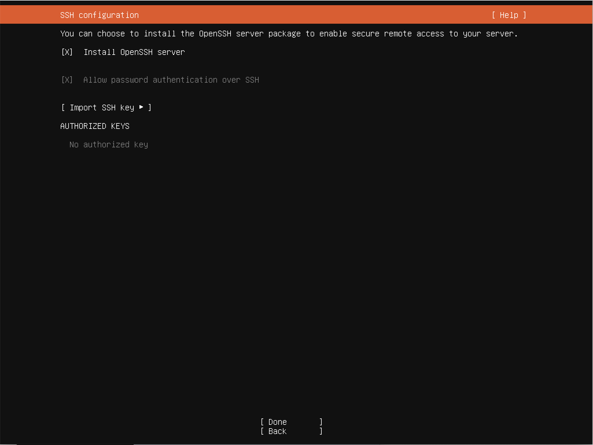 ※ この際、Install OpenSSH serverにチェックを入れる