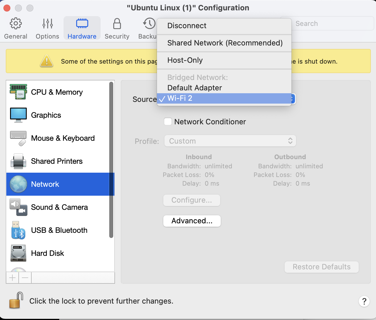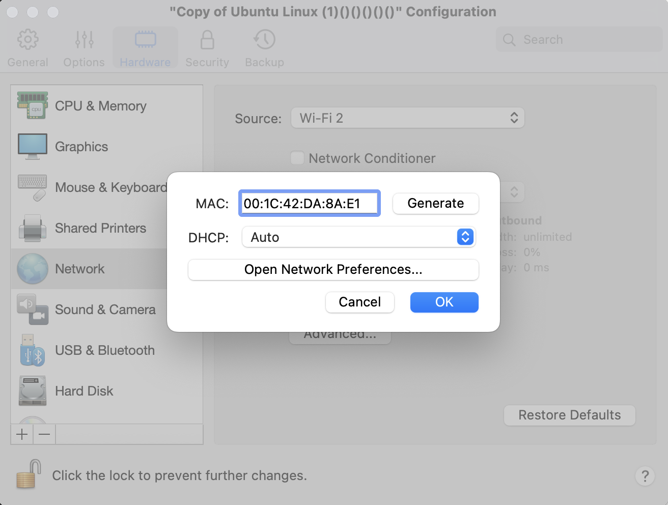 Cloneした環境に対し、同じようにNetworkを開き、Advanced…からMACアドレスを適当なものに変更する