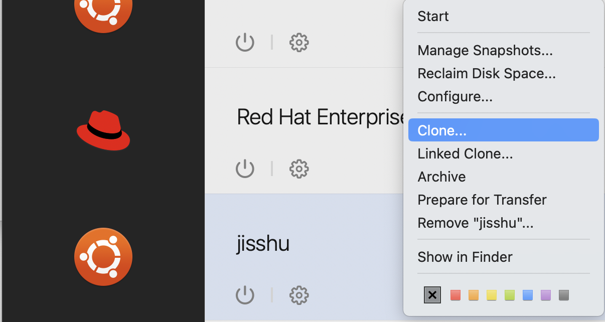 Parallels Desktopのホーム画面から、先ほど作った仮想環境を右クリックし、Cloneする